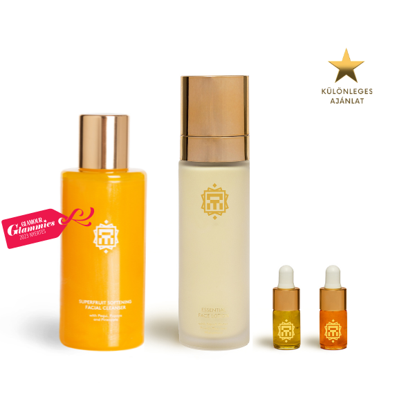 Végezd el a dupla tisztítást egy lépésben a Superfruit Gyengéd arctisztítóval, hidratáld vízhiányos arcbőröd a könnyed Esszenciális arckrémmel. Majd válassz kedvedre, a két mini arcolaj közül: a Ragyogó arcolajjal bőröd egyenletes, feszes, és ragyogó lesz; a Megújító arcolaj segít helyreállítani bőröd egyensúlyát, és hihetetlenül puhává varázsolja bőröd.